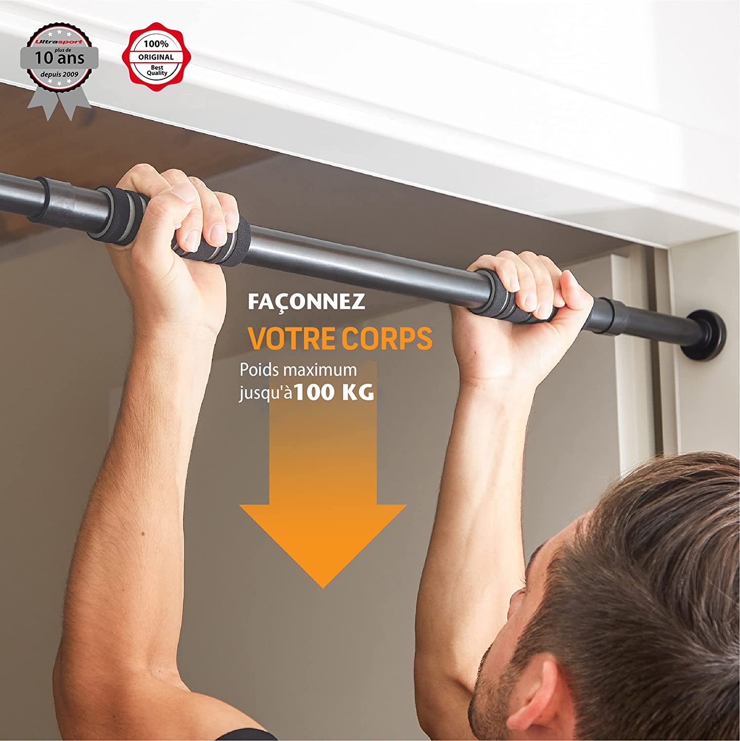 Barre de traction en acier stable, peut supporter jusqu’à 100 kg